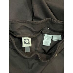 Made of 68% viscose, 28% nylon, and 4% spandex. Features an elastic waistband, and gold embellishment. Laying flat measure 14.5" in the waist, 16.5" in the hips, 9.5" rise, and 30" inseam. Be sure to check out all of my other Anne Klein listings