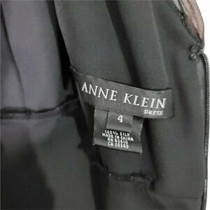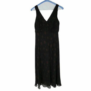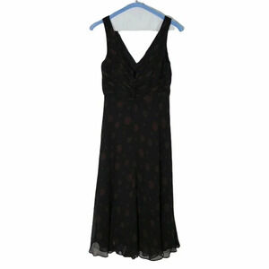 Anne Klein Brown Polka Dot Black Dress 100% Silk Size 4 Work Party Cocktail