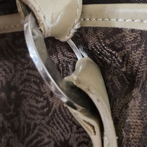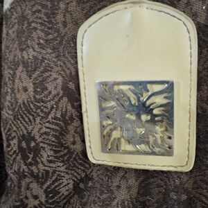 The Anne Klein tote features a sophisticated blend of brown and cream tones, highlighted by its structured silhouette. Accents add a touch of elegance, making it a stylish choice for any occasion. Crafted with attention to detail, this bag combines both fashion and functionality.