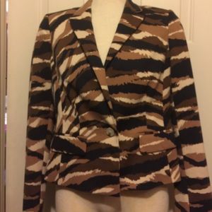 Anne Klein camel Animal Print Multi fully lined one button blazer 81% polyester 16% viscose 3% elastene, dry clean only NWT