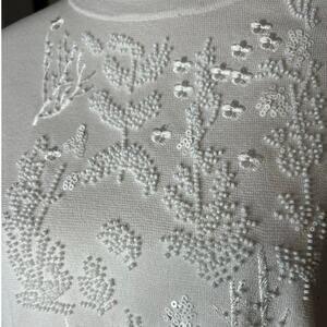Anne Klein Cap Sleeve White Sweater with Embroidery and Sequins Size XL