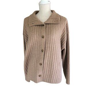 Anne Klein Cardigan Sweater Women’s XL Ribbed Button Front Camel Tan NWT