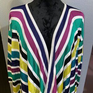 Anne Klein Cardigan Women’s XL Open Front Jacket Multicolor Striped Sheer Light