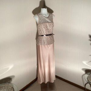 Anne Klein Champagne Evening Gown. SIZE 8. WORN ONCE. Comes with gold/champagne belt. Lace tops with silk skirt.