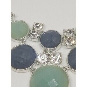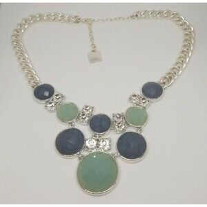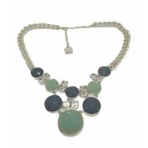 Anne Klein Statement Necklace Chunky Silver Tone Chain Green Faceted Circles.