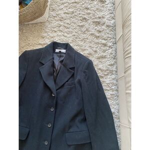 Anne Klein Classics Coat Wool Black Herringbone Mid Length Womens 14