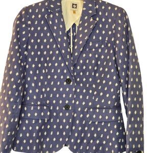 Anne Klein Clipped Jacquard Atlantic Blue Optic Career Style Blazer Size 2