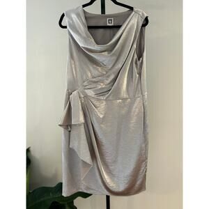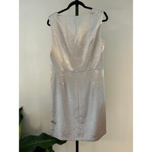 Thank you for looking at this elegant sleeveless silver-gray drape knee-high dress with twisted front and side zip from Anne Klein Collection.
