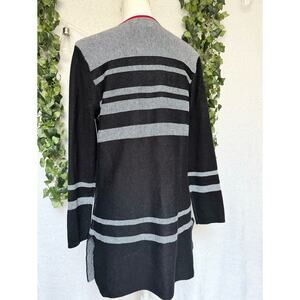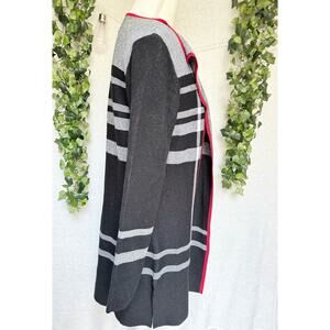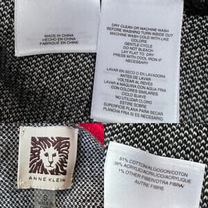 Anne Klein Cotton Acrylic Blend Black White Red Plaid Open Cardigan Sweater