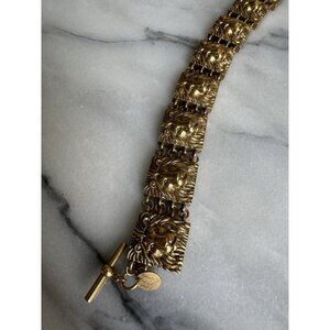 Anne Klein Couture Vintage Lion Link Choker Chunky Necklace Brushed Gold