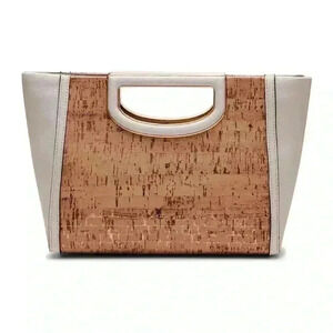 This cork and cream tote is right on trend for the summer and in like new condition! This bag is not only gorgeous, but also very comfortable and practicle. With slight gold shimmer detail, this bag screams elegance!