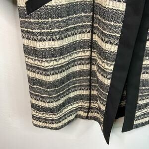 Anne Klein Cream & Navy Open Front Jacket. Longer length. Textured. Front pockets. K27