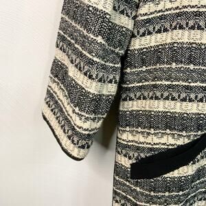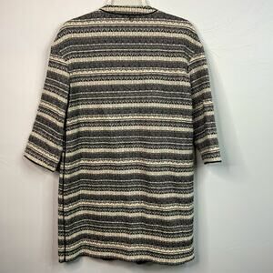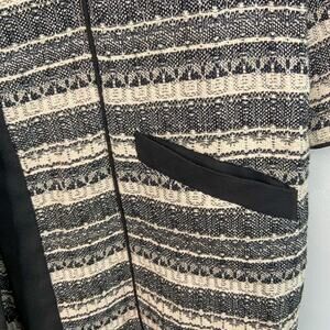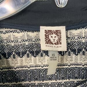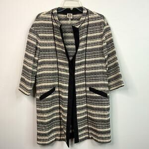 Anne Klein Cream & Navy Open Front Jacket. Longer length. Textured. Front pockets. K27