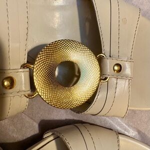 Anne Klein Cream Sandals with Gold Accent