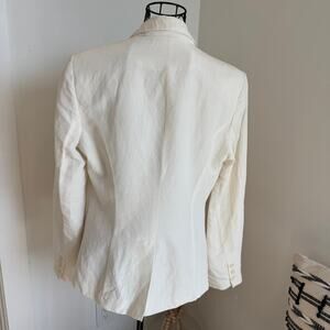 Anne Klein Creamy White Silk Linen Blend Notched Collar Single Button Blazer-8
