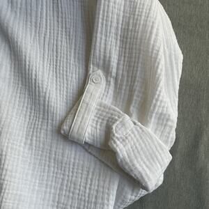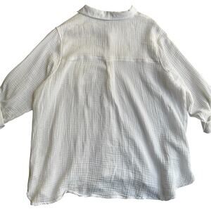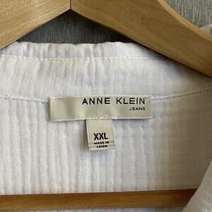 Anne Klein Jeans Womens crinkle Gauze Roll Tab Sleeve Button Down Shirt Size XXL Coastal Beach Travel Vacation Clean Girl Mature