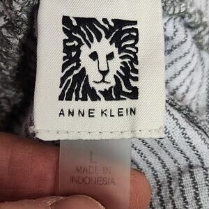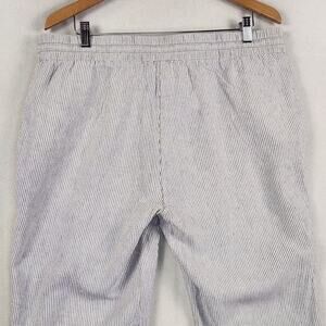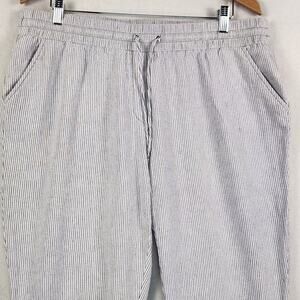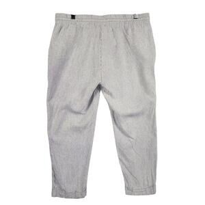 Anne Klein Cropped Linen/Cotton Pants Women L Gray/White Micro Stripe Pockets