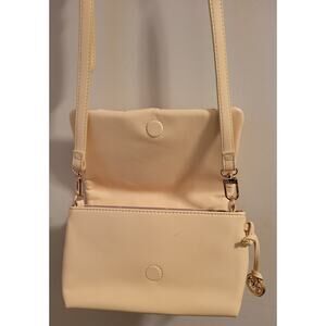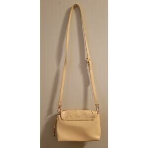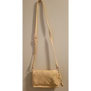 Anne Klein Crossbody Bag Tan/Beige Purse Basket Weave Design Flap Over Closure