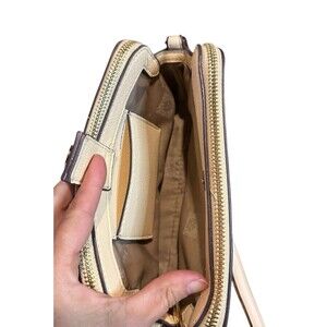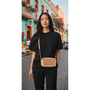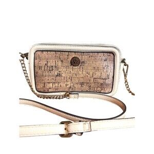 Anne Klein Crossbody adjustable strap cream faux cork small gold tone accents