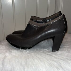 Anne Klein Dalayne Dark Grey Leather Ankle Booties Sz 8 y2K Zipper Detail