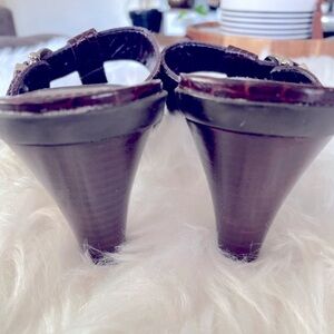 Anne Klein Dark Brown Croc-Embossed Sandals