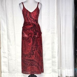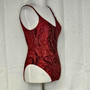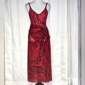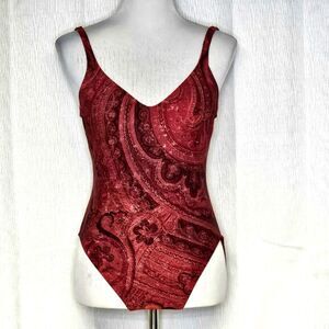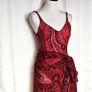 Anne Klein Deep Red & Black Paisley One piece Swimsuit & Skirt Wrap Cover-Up Set