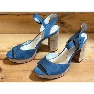Anne Klein Denim Peep Toe Cork Heels - Women's Size 9M