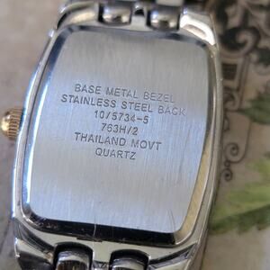 Add timeless elegance to your wrist with this Anne Klein Diamond Collection women’s watch, a refined blend of classic design and subtle luxury. The silver-tone dial is beautifully accented with gold-tone hour markers and matching hands, creating a warm, balanced contrast that remains easy to read. A genuine diamond accent at the 12 o’clock position elevates the design, adding a discreet touch of sparkle and sophistication. The two-tone case and bracelet combine silver and gold finishes for a versatile look that pairs effortlessly with both everyday outfits and formal attire. Powered by a reliable quartz movement made in Thailand (763H/2), the watch offers accurate, low-maintenance timekeeping. A stainless steel case back adds durability for regular wear. Model 10/5734-5, this piece reflects Anne Klein’s signature elegance and enduring style, making it an excellent choice for collectors or anyone seeking a polished accessory with classic appeal.