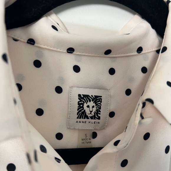 Product: Anne Klein| Dot Print Collared Short Sleeve Blouse