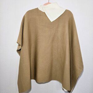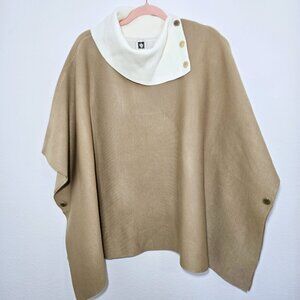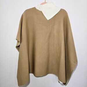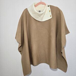 Anne Klein Double Face Poncho Sweater Size L Tan Cream Split Collar | Never Worn