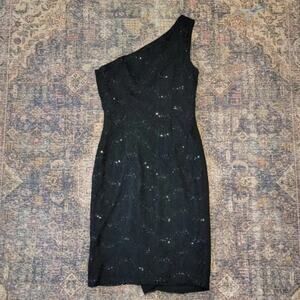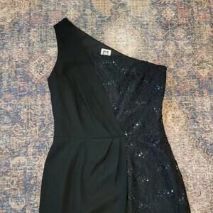 Tags: Anne Klein dress, cocktail dress, lace one shoulder, black sequin dress, evening wear, elegant formal dress, wedding guest outfit, holiday party, little black dress, timeless fashion, plenty trend closet