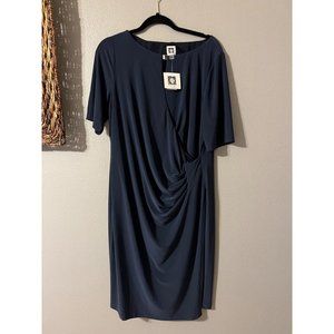 Anne Klein Dress 16 MaryEllen Navy Blue Short Sleeve Career Church NWT NEW