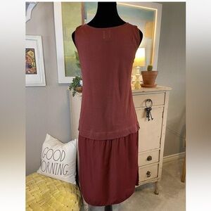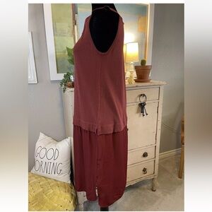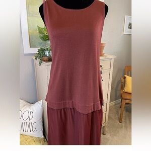 Anne Klein Dress M Red Midi Viscose Minimal Lagenlook Sleeveless Preppy Party