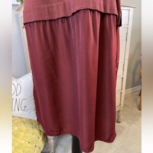Introducing a beautiful Anne Klein dress in a rich cinnamon color, perfect for the fall season. This dress offers a layered look with a minimalist style, making it versatile for any occasion. It comes in a regular size M, with a midi dress length that is flattering for any figure. Made of high-quality viscose blend material, this dress is comfortable to wear and perfect for a summer, fall or spring day.