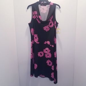 NWT Anne Klein Sleeveless Floral Dress Pink Black M