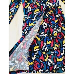 Anne Klein Dress Small Colorful Faux Wrap Jersey Sheath Art Fitted Knee 3/4