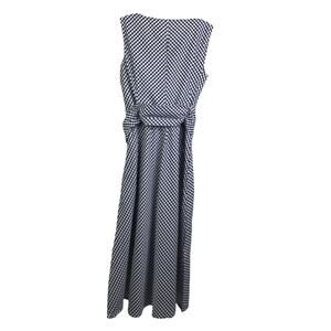 Anne Klein Dress Women 6 Maxi Preppy Tie Waist Blue Sleeveless Gingham Cottage Core