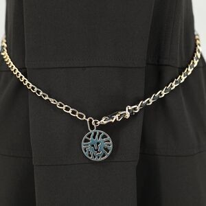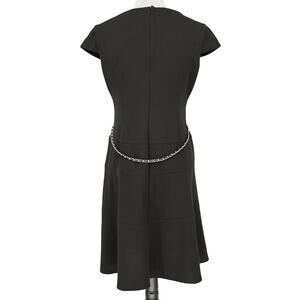 Anne Klein Dress Women's Size 8 Black Crepe Gold Chain Belt Logo Medallion Zip