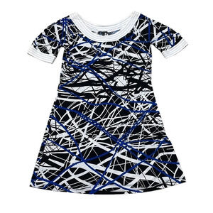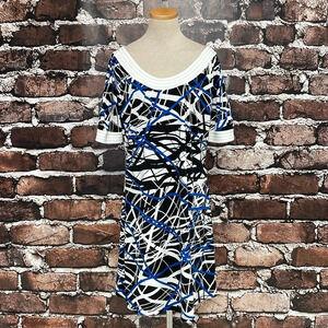 Anne Klein Dress Womens Large Blue Line Pattern Short Sleeve A-Line Midi
