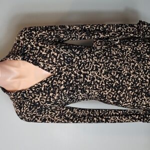 Anne Klein Dress Wrap Liquid Knit Print Retroglam Black Camel 2P