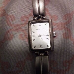 Elevate your accessory game with this chic Anne Klein dual-tone brushed metal watch. Featuring a classic rectangular face and a sleek metallic bracelet, this timepiece exudes elegance and sophistication. Brand-new condition, never worn, just needs a new battery to tick perfectly. A timeless piece to complement any outfit!