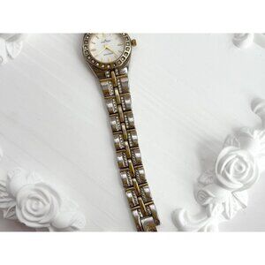 Anne Klein Dual Toned Rhinestone Accented Vintage Watch - 17mm - WORKS!