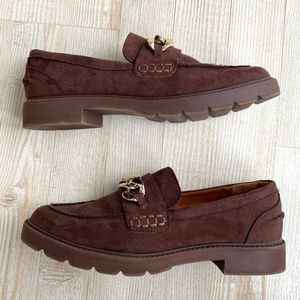 Anne Klein Eunice Chain Strap Vegan Suede Loafers | Brown Size 7.5