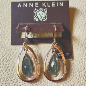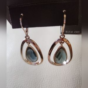 Anne Klein faceted stone orbital drop dangle earrings. Rose gold tone. Bluish tone stones. 1 inch drop.