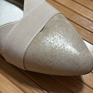 Step out in style with these elegant cream flats from Anne Klein. Perfect for any occasion, these shoes offer both comfort and sophistication. The bit of shimmer adds another level of flair.