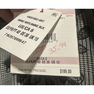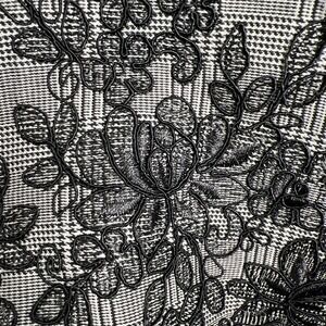 The Anne Klein Floral Houndstooth Lace Pencil Skirt in women's size 6 is a stylish and versatile piece perfect for various occasions. Made from a blend of polyester, spandex, and viscose, the skirt features a flattering knee length with a straight and pencil style. The black and white color scheme, along with the lace accents, adds a touch of elegance to the outfit. Ideal for workwear, business meetings, or casual outings, this skirt is lined and offers stretch for comfort in all seasons.