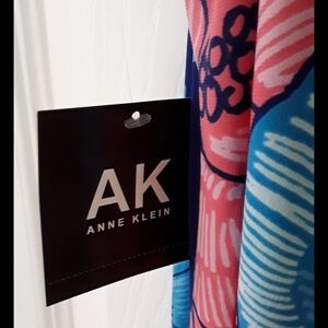 Vibrant floral midi dress by Anne Klein. Features bold blue, pink, and green hues. Sleeveless design. Perfect for any occasion.