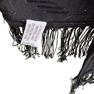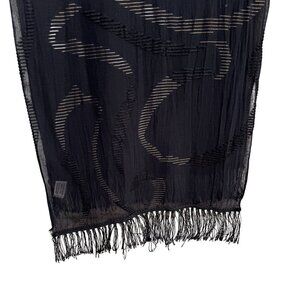 Anne Klein For Vera Vintage Black Sheer Metallic Fringe Italian Made Scarf Wrap