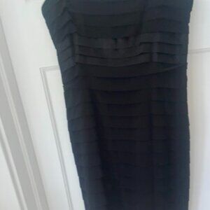 Anne Klein Formal Dress, Tiered Black Satin, Mid-Length
