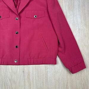 Anne Klein Fuchsia Pink Button Down Casual Career Chic Bomber Jacket Stretch 14